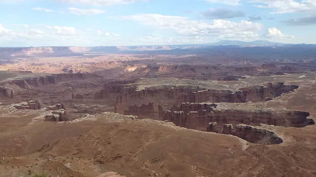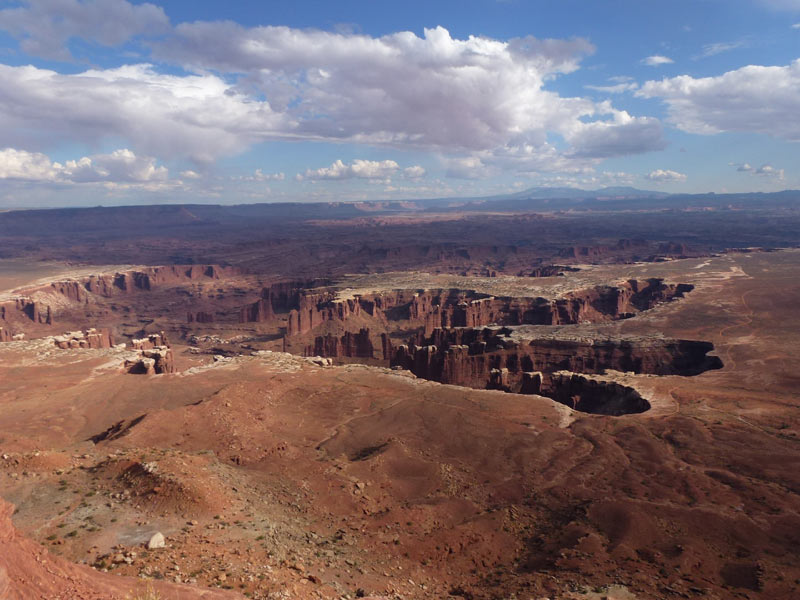 Canyonlands National Park, Ist mit seinen 1,366 km² der größte Nationalpark in Utah. Er besteht aus drei geologischen unterschiedlichen Formationen, die untereinander nicht über Strassen verbunden sind. Island in the Sky als weitläufige Hochebene wird durch die Flüsse, Colorado River und Green River unterbrochen und bieten vom White Rim spektakuläre Aussichten. Im Needles Distrikt, benannt nach von rot und weiß gemaserten Felszacken, die die Gegend prägen, gibt es ebenfalls Steinbögen wie im Arches NP, sind aber nur mit Geländegängige Fahrzeuge erreichbar. The Maze ist der dritte Abschnitt und am wenigsten zugänglich. Bekannt ist der Canyonlands NP auch durch Touren für Mountainbiker oder Geländewagen die mehrere Tage beanspruchen. |