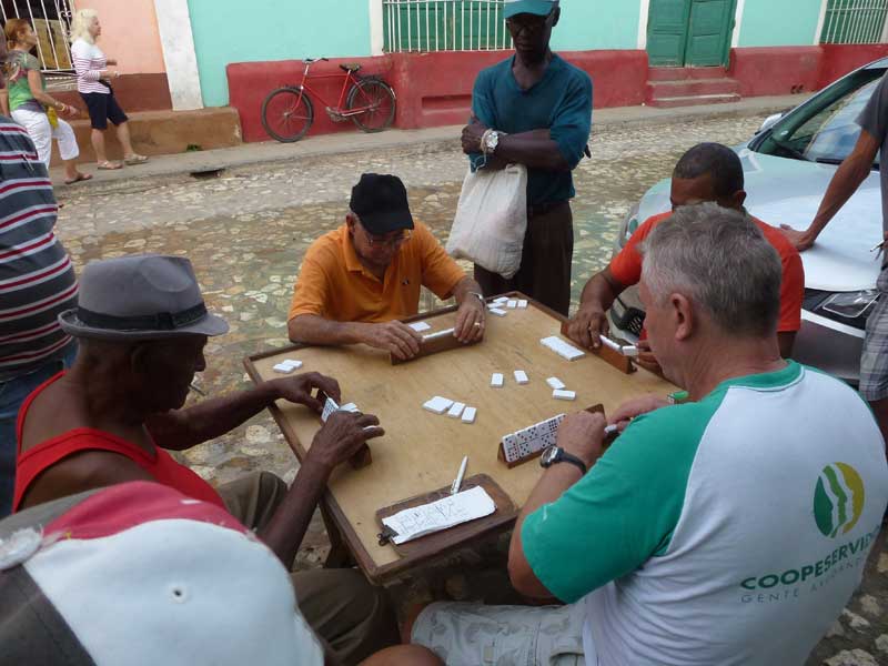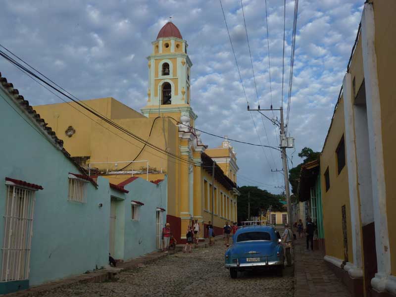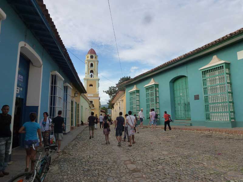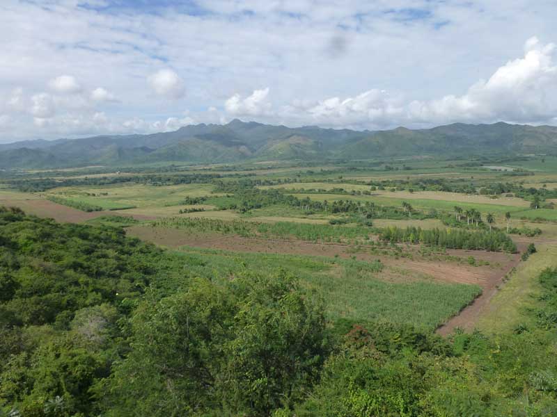 Das Taxi holt uns für die bei Cubatur gebuchte, 3 Tages Tour, nach Santa Clara, Trinidad, Mills Valley und Topes de Collante direkt an unserm Domizil in Havanna ab. Von Havanna geht es 350km nach Santa Clara. Außer dem Denkmal mit Mausoleum und dem kleinen Museum über Che Guevara gibt es nichts von Bedeutung das sich lohnen würde Santa Clara zu besichtigen. Unser Reiseleiter (Taxifahrer) meinte ein Besuch des Mausoleums würde sich nicht lohnen, da es nichts zu sehen gäbe und außerdem eine riesige Schlange Touristen am Eingang wartete. So sparten wir uns den Besuch und fuhren direkt weiter nach Trinidad. Ein im spanischen Kolonialstil erbaute Stadt die weitgehend ihr ehemaliges historisches Stadtbild weitgehend erhalten hat. Um dem Plaza Major finden sich einige Lokale in dem ab Nachmittag die übliche kubanischen Musik gespielt wird. Die Bahnstrecke von Trinidad in das Valle de los Ingenios (Tal der Zuckermühlen) bis zur Plantage Manaca Iznaga führt durch eine reizvolle Landschaft und Plantagen mit Zockerrohranbau. |