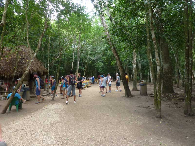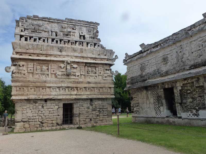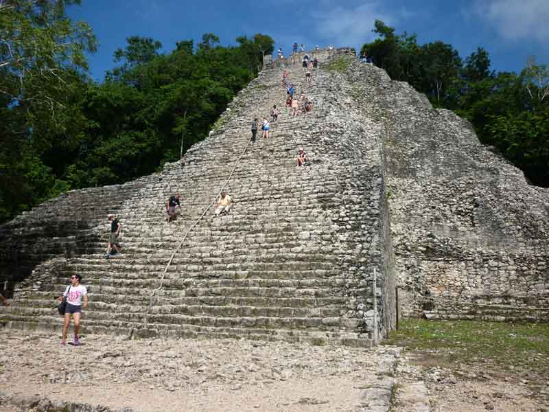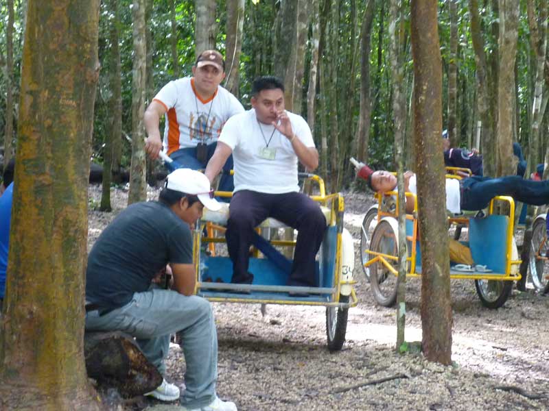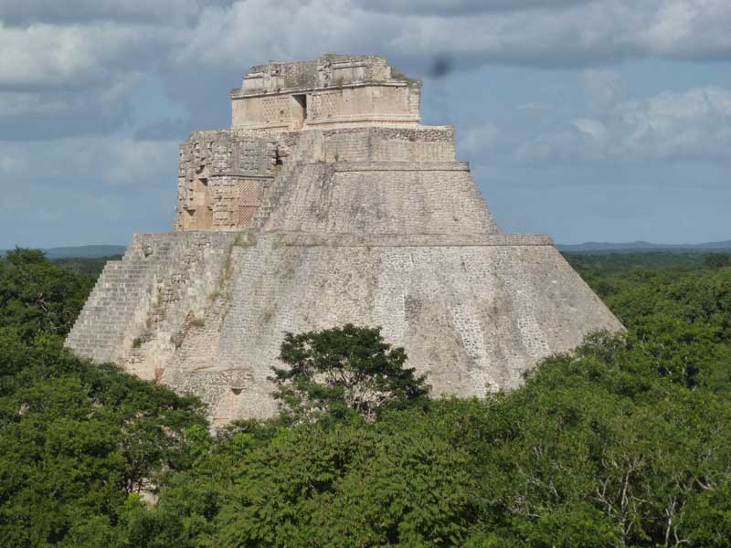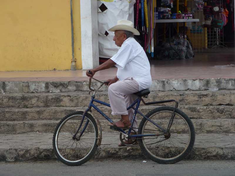 Deshalb ist es auch nicht verwunderlich, dass alle bekannten Mayastätte entsprechend frequentiert werden. In der Vorsaison sind die Preise hier noch einigermaßen moderat, Weihnacht ist kein Bett mehr zu bekommen. Wir brechen zu unserer einwöchigen Rundreise für den Besuch von Uxmal, Kabah, Izamal und Merida auf. Coba, Tulum, und Chichén Itzá, lassen sich leicht über Tagestouren erreichen. Die Pyramiden von Coba, liegen mitten im Urwald, die höchste Pyramide, Mexikos, bietet einen fantastischen Rundblick über den tropischen Wald. Mit einer Fahrrad-Rikscha lassen wir uns, den langen Weg zu den Ausgrabungen, strampeln. Wir fahren weiter nach Uxmal und Merida. |