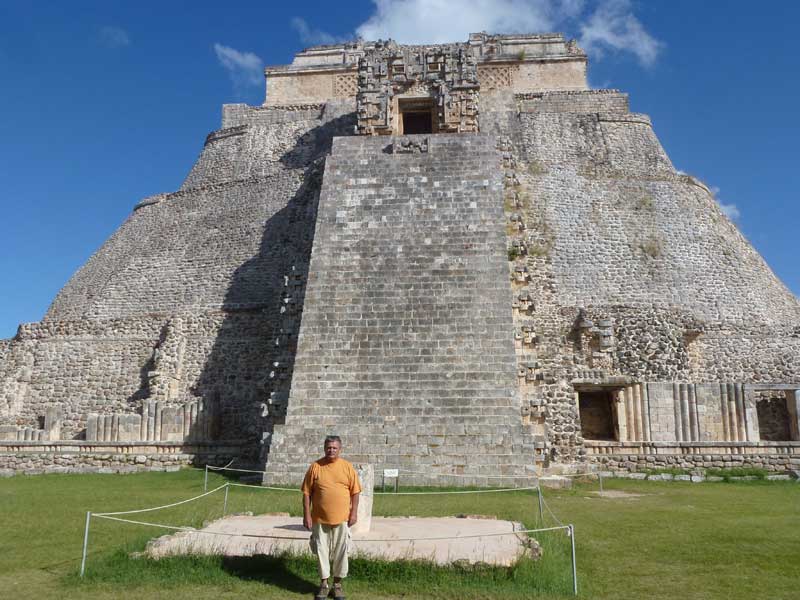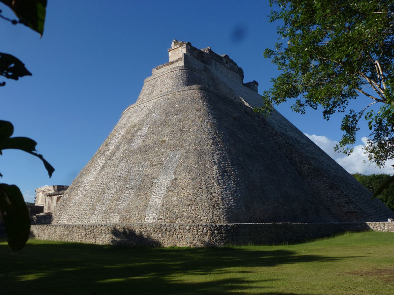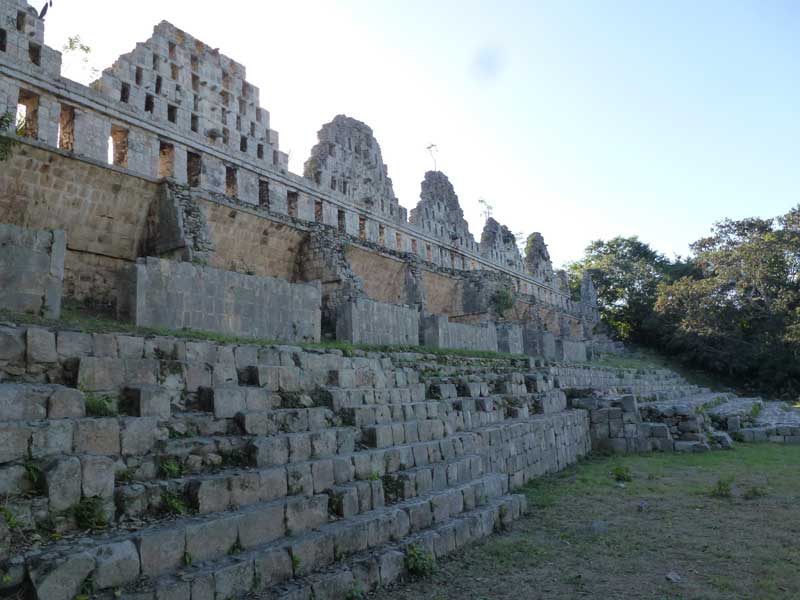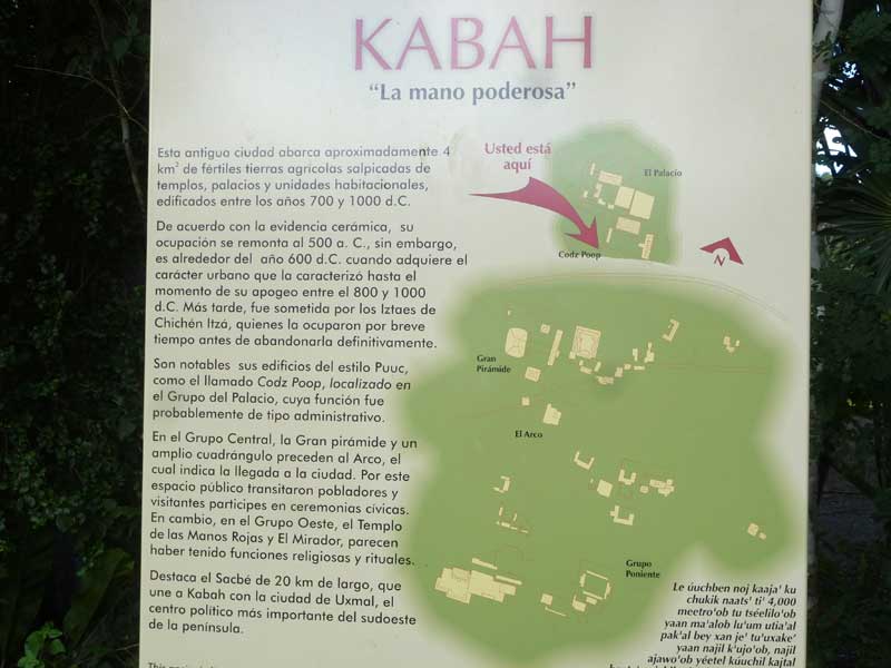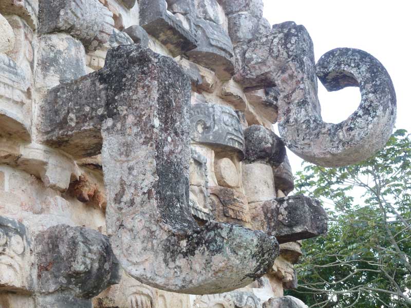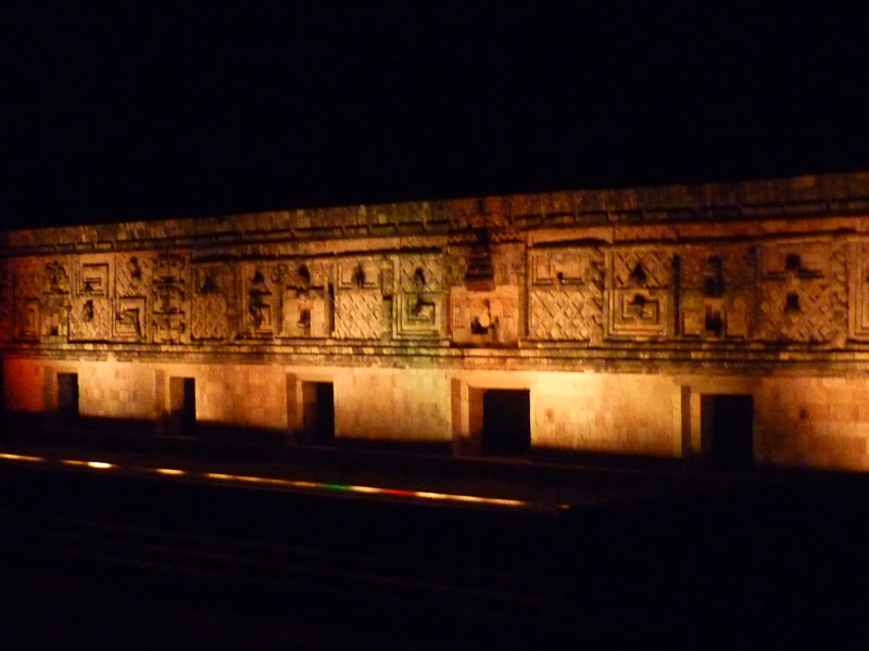 Für mich ist Uxmal, neben Palenque und Chichen Itza, einer der schönsten Mayastätten in Mexiko. Nicht so viele Touristen verirren sich nach Uxmal, so dass man hier ungestört die Tempelanlage besichtigen kann. Am Abend wird eine Lightshow geboten, die man sich, sofern man nicht Spanisch spricht, getrost versäumen kann. Etwas langatmig wird in Spanisch die Geschichte der Mayas in Uxmal erklärt, nach einiger Zeit wiederholen sich die Lichteffekte so dass kaum Stimmung aufkommt und man sich die Stunde sparen kann.Wir wohnten in einem hübschen Familienhotel in Santa Elena, The FlyCatcher Inn 10km von Uxmal entfernt. Von hieraus sind einige sehenswerte Maya-Ausgrabungen Kabah, erreichbar, leider haben wir nur eine Nacht gebucht da wir leider nicht länger Zeit haben am 9.12. müssen wir wieder in Cancun sein. |