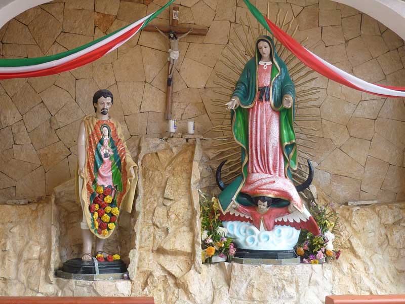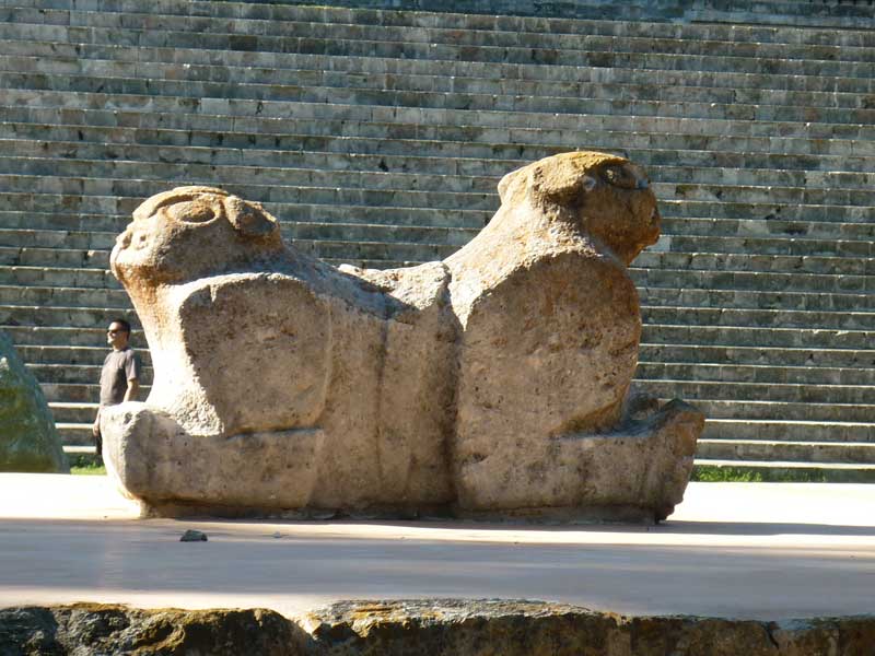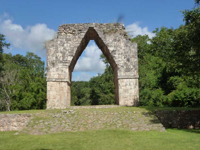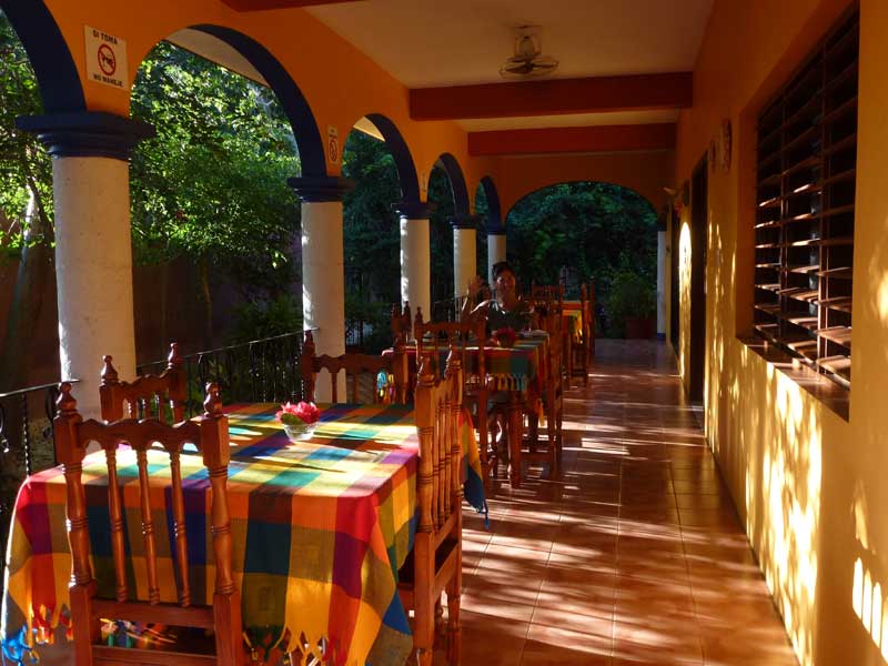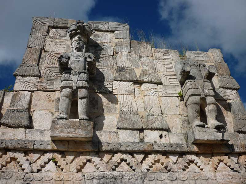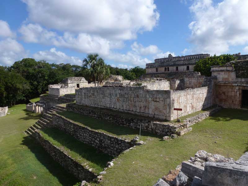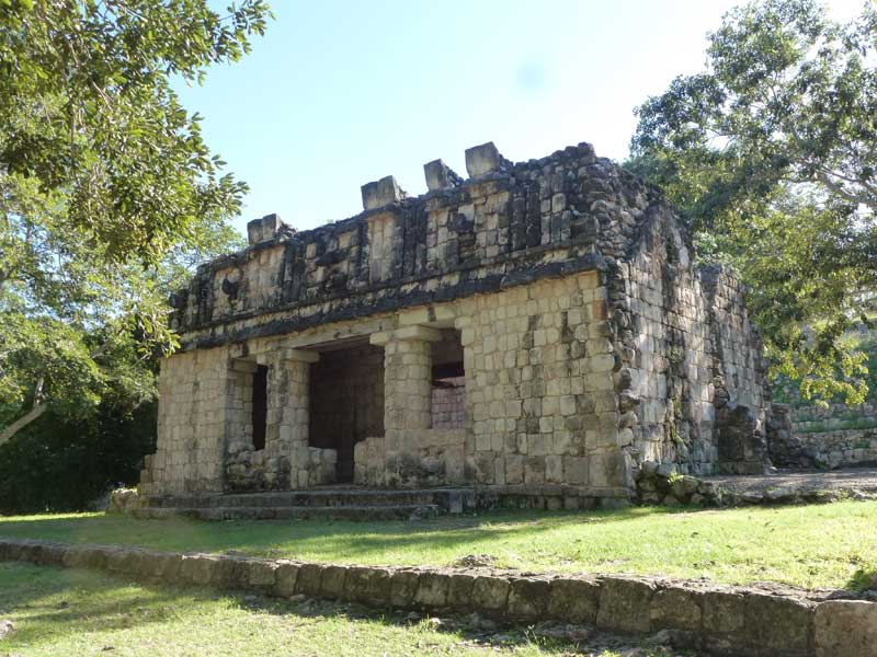 Für mich ist Uxmal, neben Palenque und Chichen Itza, einer der schönsten Mayastätten in Mexiko. Nicht so viele Touristen verirren sich nach Uxmal, so dass man hier ungestört die Tempelanlage besichtigen kann. Am Abend wird eine Lightshow geboten, die man sich, sofern man nicht Spanisch spricht, getrost versäumen kann. Etwas langatmig wird in Spanisch die Geschichte der Mayas in Uxmal erklärt, nach einiger Zeit wiederholen sich die Lichteffekte so dass kaum Stimmung aufkommt und man sich die Stunde sparen kann.Wir wohnten in einem hübschen Familienhotel in Santa Elena, The FlyCatcher Inn 10km von Uxmal entfernt. Von hieraus sind einige sehenswerte Maya-Ausgrabungen Kabah, erreichbar, leider haben wir nur eine Nacht gebucht da wir leider nicht länger Zeit haben am 9.12. müssen wir wieder in Cancun sein. |