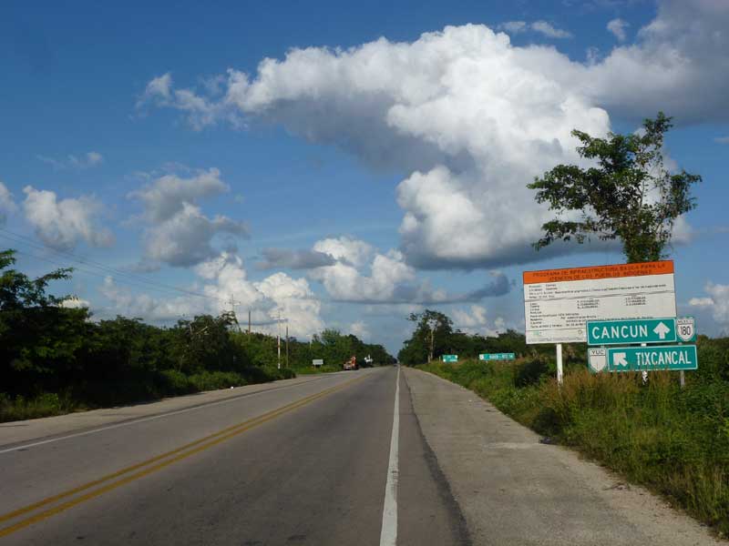 Von Valladolid, sind es noch 165 km bis Cancun. Im mexikanischen Fahrstil, bei dem Geschwindigkeits- Begrenzungen als Empfehlung betrachtet werden, geht es flott voran. Wir müssen ein Hotel finden, das einen unserer Koffer, während unserer Kubareise aufbewahren kann. Die Hauptsaison kündigte sich an, so waren die meisten Hotels in Flughafennähe, am 9.12 ausgebucht. Schließlich wurden wir im Quinta Inn fündig, der Übernachtungspreis, inklusive Frühstück, angemessen und das Wichtigste, kostenlose Kofferaufbewahrung, bis zur unserer Rückkehr. Pünktlich stehen wir am Counter von