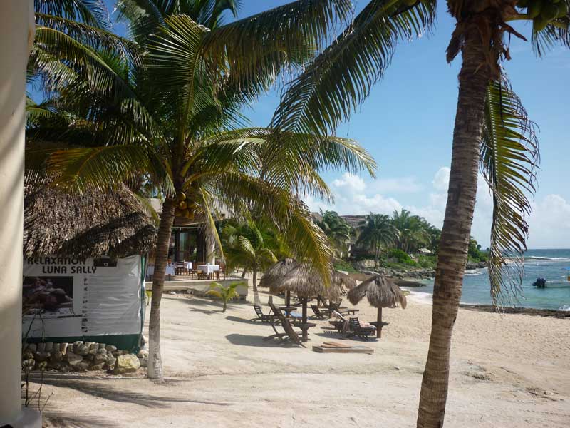 Noch ist Vorsaison, deshalb waren wir die einzigen Hotelgäste. Sicher gibt es für den Preis von $135 /Tag in Cancun, Playa del Carmen und Tulum (Rivera Maya) schönere Hotelanlagen, aber dafür ist man auch fern vom Trubel, der von Amerikaner geprägten Ballermann Atmosphäre. Der Nachteil, nur mit einem Leihfahrzeug können günstigere Restaurants besucht werden, das Hotelrestaurant ist für mexikanische Verhältnisse zu teuer. Der weiße Sandstrand und das warme Meerwasser sind ideale Vorraussetzungen sich hier zu erholen. Von hier lassen sich die Maya-Tempelanlagen, . Tulum, Coba und Chichén Itzá, in Tagesausflüge erreichen. |