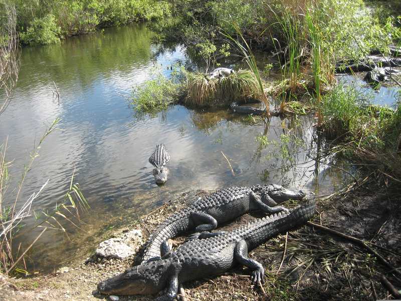 Am nächsten Tag fahren wir auf Tamiami Trail ostwärts. Hier laden immer wieder Seitenwege mit Kanälen zu verweilen ein. Hier kann man in sicherer Entfernung Alligator beim Sonnenbaden antreffen. Selbstverständlich buchen wir eine Fahrt mit einem Propeller Speedboot. Die Aligatoren wissen das und lassen sich gerne "streicheln" da sie wissen ein Häppchen Hühnerfleisch ist ihnen sicher. Am Abend treffen wir auf dem Parkplatz des Miccoukee Casino & Resort ein. Das Buffet im Casino ist empfehlenswert. |